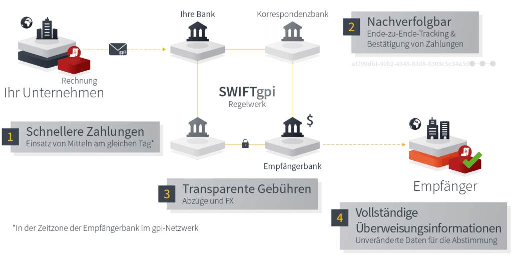 Die Society for Worldwide Interbank Financial Telecommunication, abgekürzt SWIFT, hat sich als Nachrichtenstandard für die Interbanken-Kommunikation entwickelt. Praktisch alle Banken nutzen SWIFT Nachrichten, um sich gegenseitig über die Abwicklung von Zahlungen zu instruieren. Seit 2017 rollt SWIFT ihr Produktportfolio GPI (global payment innovation) aus.